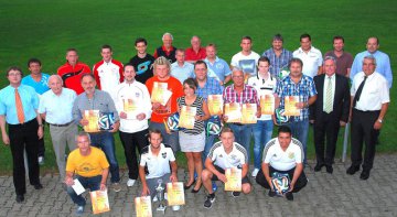 Im Rahmen der Kamapgne "Pro Amateurfußball" haben alle Allgäuer Vereine zum Saisonstart ein sog. Starterpaket erhalten. Darin befinden sich Broschüren, Plakate, Pins, Trainingsleibchen und viele weitere interessante Artikel. Die Verteilung erfolgte bei den Jugendspielgruppentagungen.