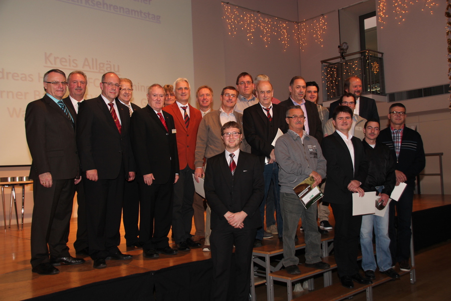 Organisation von Jubiläen, Durchführung von Altpapiersammlungen, Bewirtung im Sportheim, Reinigung der Trikots oder diverse Hausmeistertätigkeiten sind nur ein Bruchteil, was viele freiwillige Helfer in den örtlichen Vereinen jeden Tag leisten. Posten wie Abteilungsleiter, Platzwart, Trainer, Vorstand oder Pressereferent gehören ebenfalls zum Repertoire der vielen Ehrenamtlichen und gerade im Jugendbereich ist der tägliche Einsatz unentbehrlich. Um genau dieses große und vielseitige Spektrum mit Dank und Ankerkennung zu würdigen, veranstaltet der Bayerische Fußball-Verband (BFV) jährlich den Ehrenamtstag, der heuer Ende November im Mindelheimer Forum feierlich abgehalten wurde. Dabei stehen die fleißigen und stillen Helfer im Mittelpunkt und der neue Bezirksehrenamtsreferent Günther Brenner bezeichnete sie als „stille Helden des Fußballsports“: „Sie alle hinterlassen durch ihr Ehrenamt Spuren, wofür wir ihnen heute danken wollen“. Auch Bezirkstagspräsident Jürgen Reichert war in seiner Festansprache voll des Lobes: „Sie alle leisten großartige Arbeit.“ Gegen Themen wie Drogen, Gewalt und Alkohol werde durch das Ehrenamt angegangen: „So etwas geschieht nicht auf Spitzenebene, sondern in den Vereinen.“ Dass dabei ein besonderes Augenmerk auf die Jugendarbeit gerichtet wurde, machte der Blick auf die Aktivitäten der Geehrten deutlich. Irgendwann waren fast alle als Jugendbetreuer oder Jugendleiter engagiert und setzten sich so für die Belange der Nachwuchskicker ein. „Das ist keine Selbstverständlichkeit“, dankte Jürgen Reichert und auch Bezirksvorsitzender Volker Wedel lobte den unermüdlichen Einsatz. „Es ist bewundernswert wie aufopferungsvoll die Geehrten über zum Teil Jahrzehnte fungieren“, stellte Moderator und Kreisvorsitzender des Allgäus, Benjamin Adelwarth, abschließend fest. Kraft, Freude und Motivation wünschte stellvertretender Landrat und Bürgermeister der Stadt Mindelheim, Dr. Stephan Winter, und Günther Brenner brachte es mit den Worten „Tue Gutes und Rede darüber, denn nur durch positive Wahrnehmung können wir das Ehrenamt präsentieren, die keine Last sein soll, sondern eine Quelle, aus der wir schöpfen können“ auf den Punkt. Danach wurden die insgesamt 46 Geehrten aus den drei Kreisen Allgäu, Augsburg und Donau durch Günther Brenner, Volker Wedel und den Kreisehrenamtsbeauftragen Klaus Hauptmann, Dr. Peter Wassermann und Josef Wiedemann mit dem DFB-Sonderpreis, einer hochwertigen Armbanduhr, ausgezeichnet. „Das ist der Ehrenamtsoscar des Fußballsports“ würdigte Günther Brenner die Ehrung und zur Musik der Gruppe „ÖHA“ aus Unterrieden und leckeren Gaumenfreuden klang der Vormittag bei heiteren Gesprächen gemütlich aus.