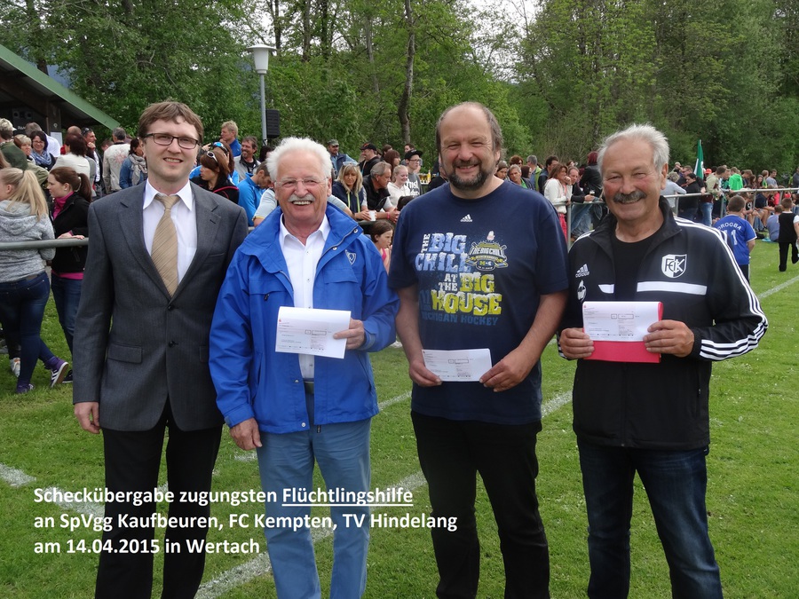 Im Rahmen des Toto-Pokal-Kreisendspiels wurden im Kreis Allgäu am 14. Mai 2015 in Wertach die Schecks der Aktion "1:0 für ein Willkommen" übergeben. Ein toller Rahmen, da aufgrund des Spiels rund